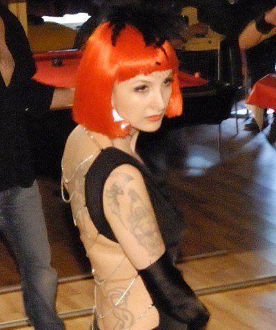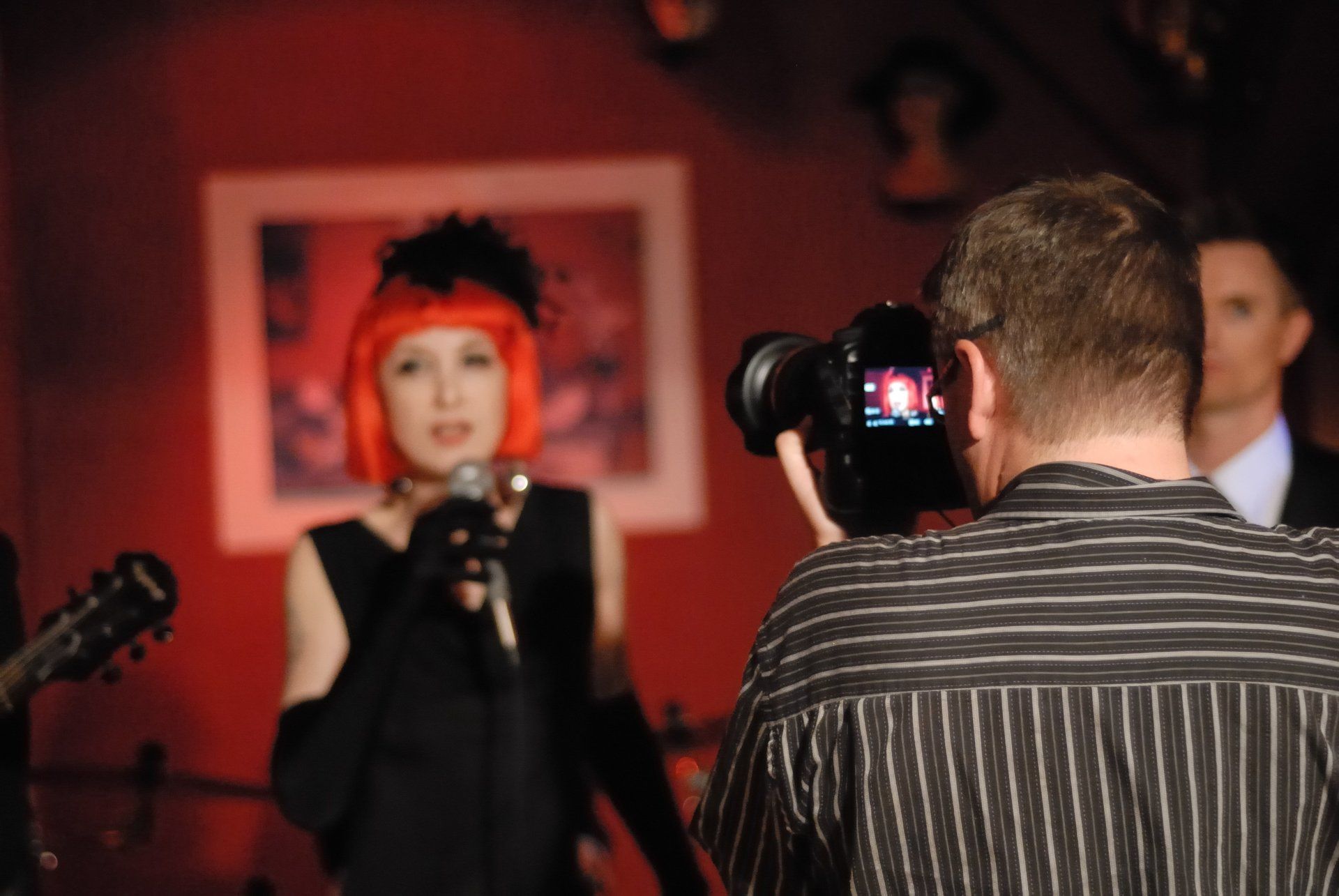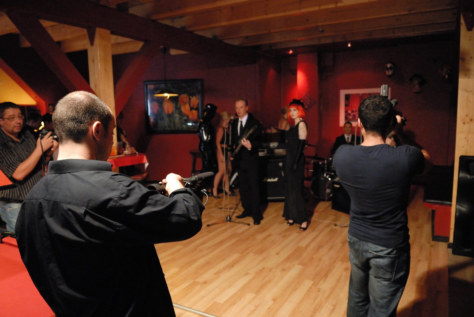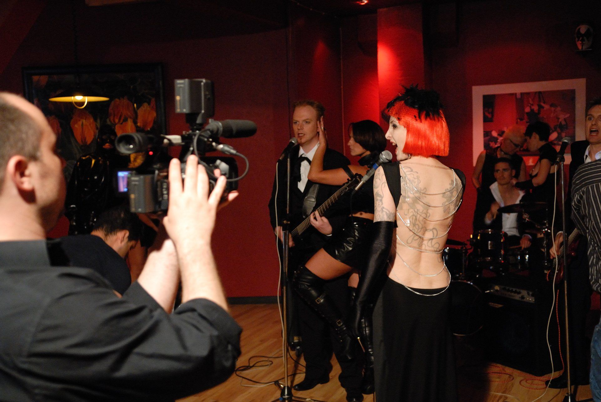 A very special experience was the shoot for "Love Bizarre" The whole idea was to show a band in evening dresses who play their programm verry straight on a stage in a club..... while everything around them sinks into a wild orgy.