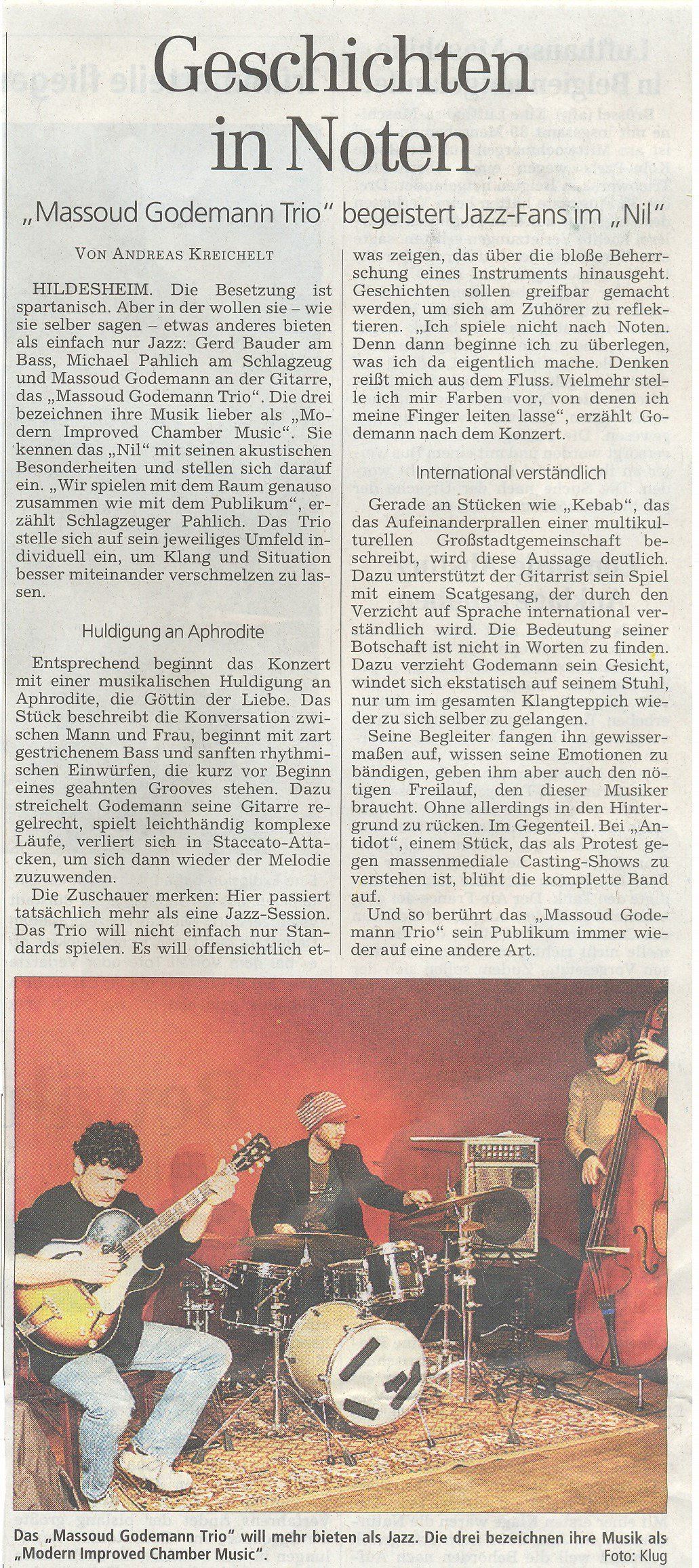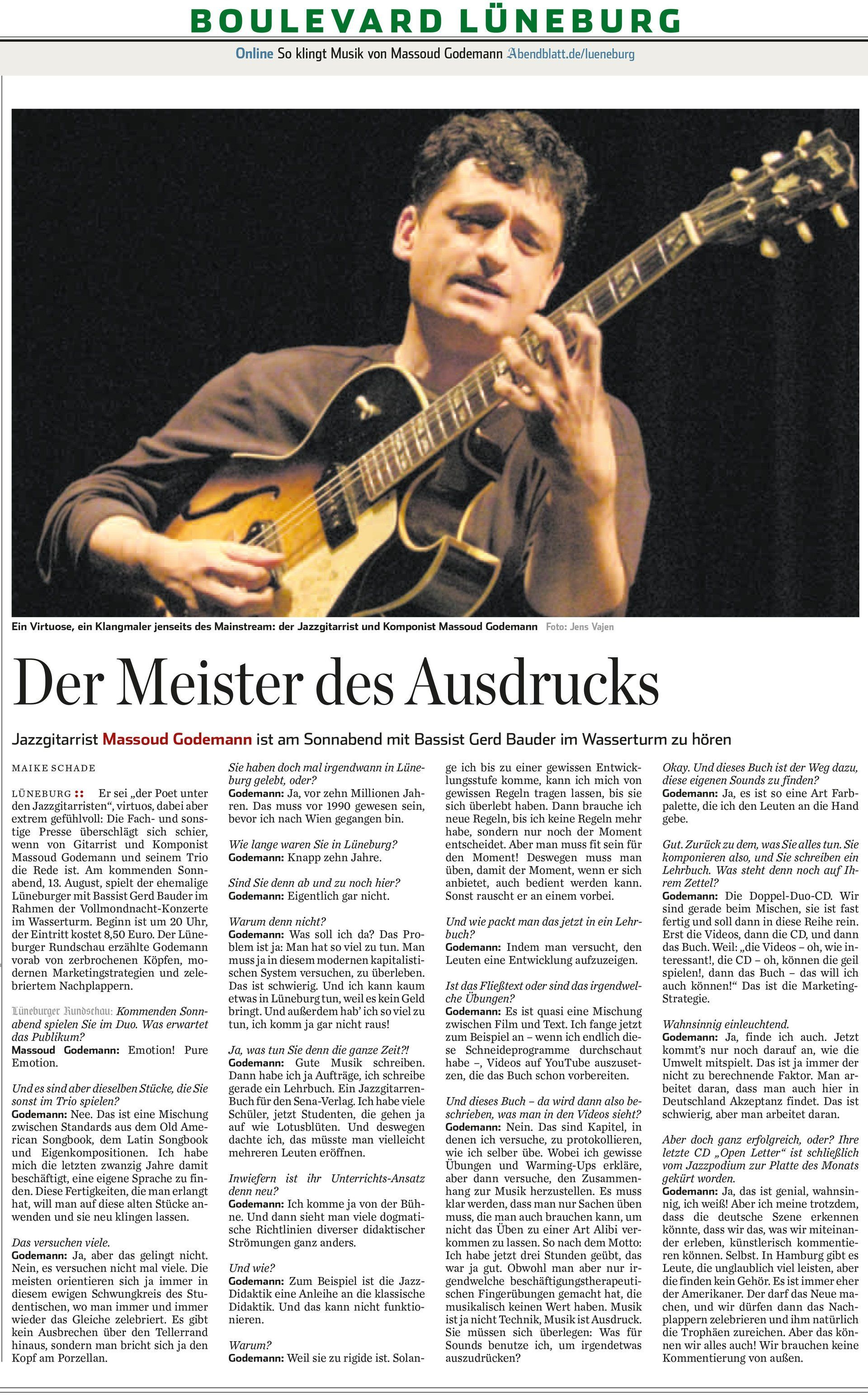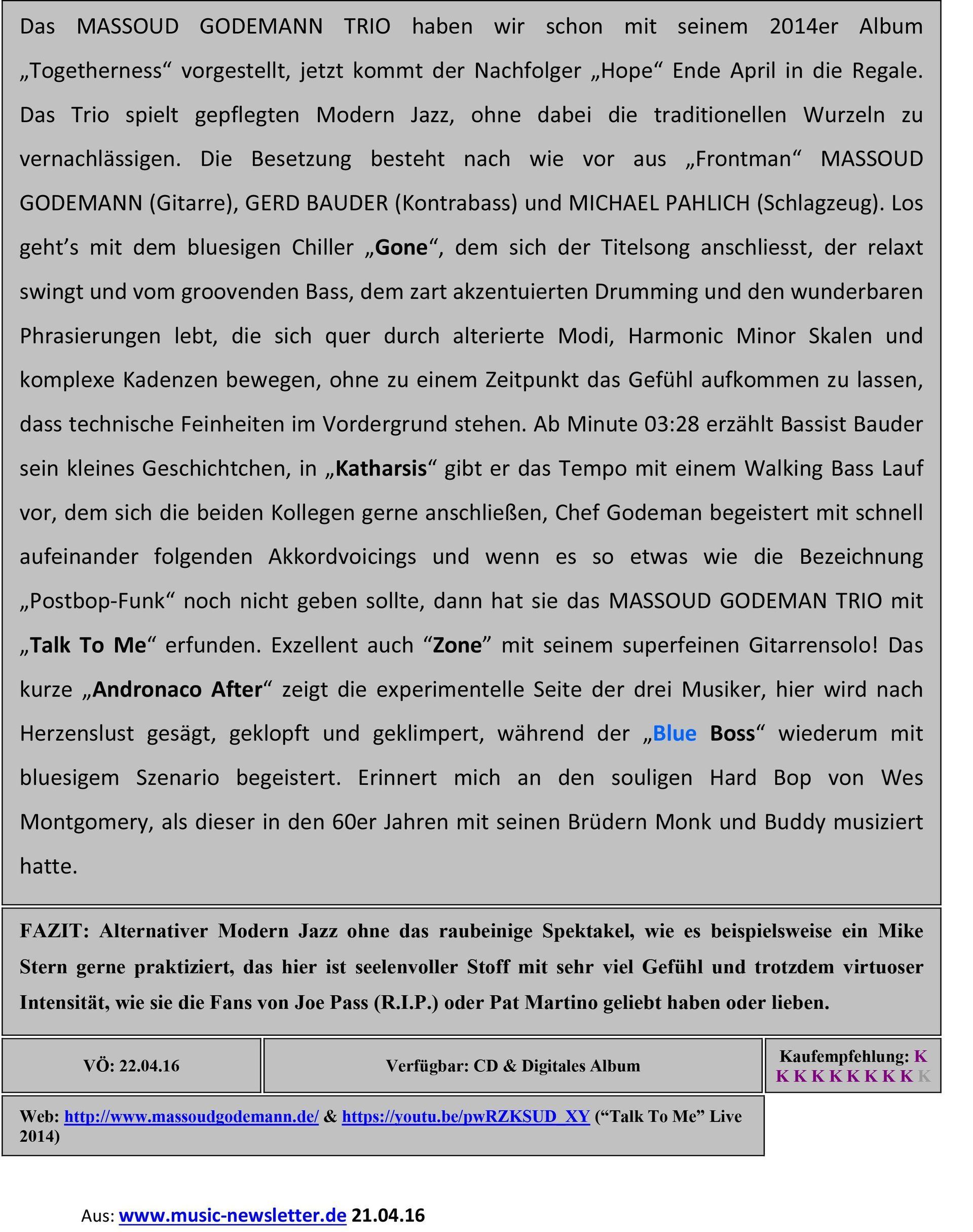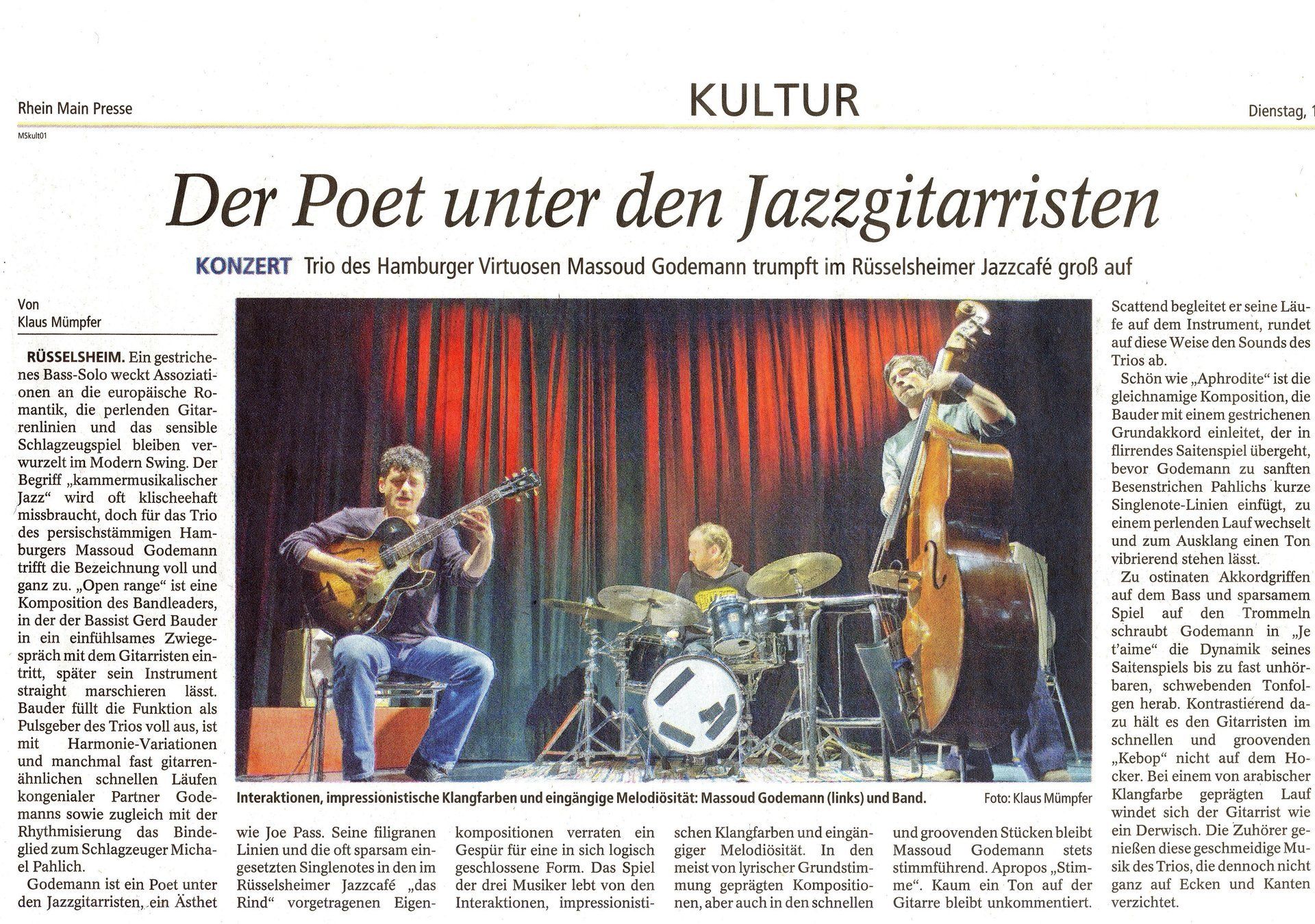 "Jazz is life and life is joy. My music is a tribute to life, "says Massoud Godemann, who recorded 2010 with Open Letter" one of the most beautiful, poetic, moving, convincing jazz guitar albums ever "(Jazzpodium Nov / Dec 2012).