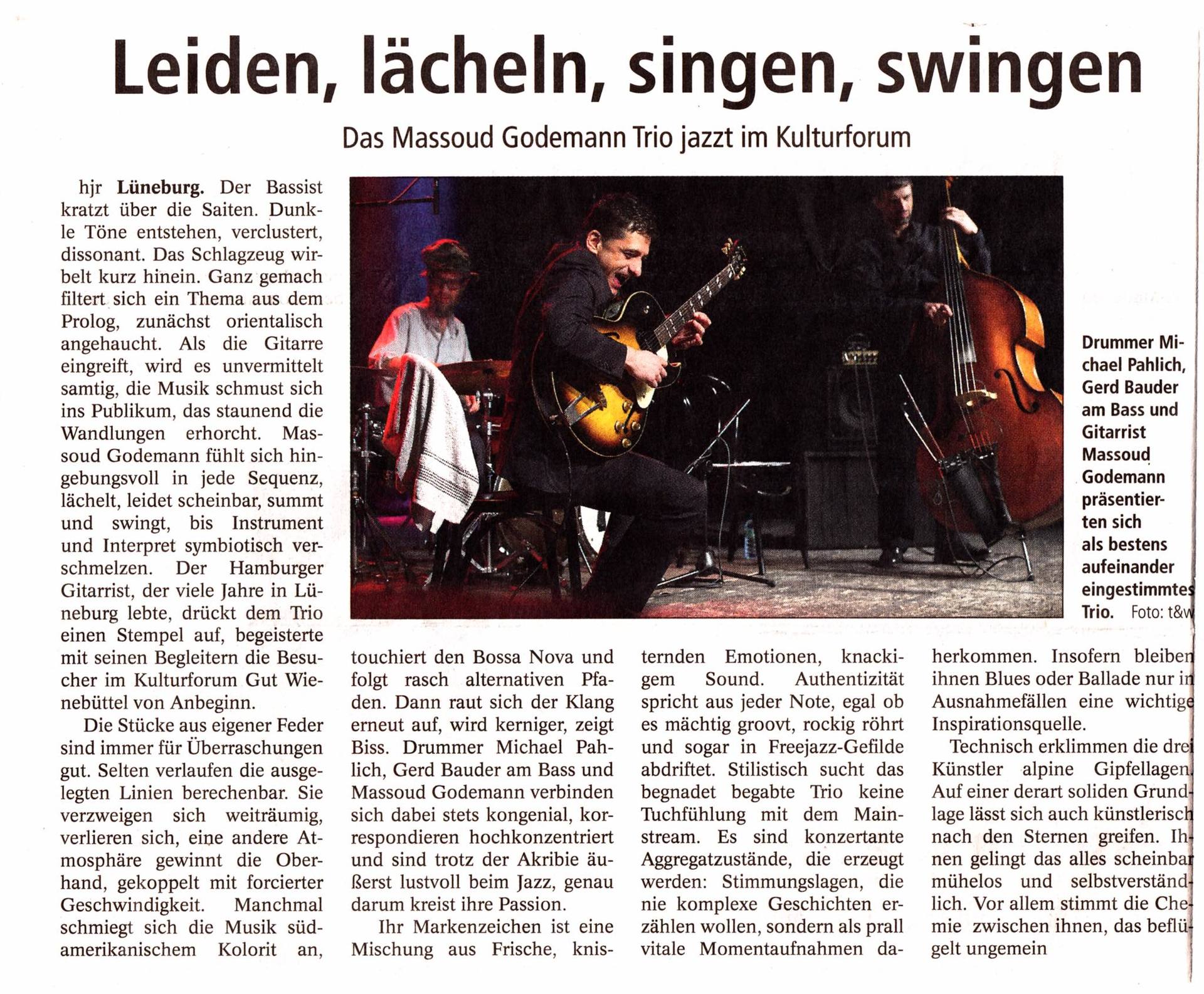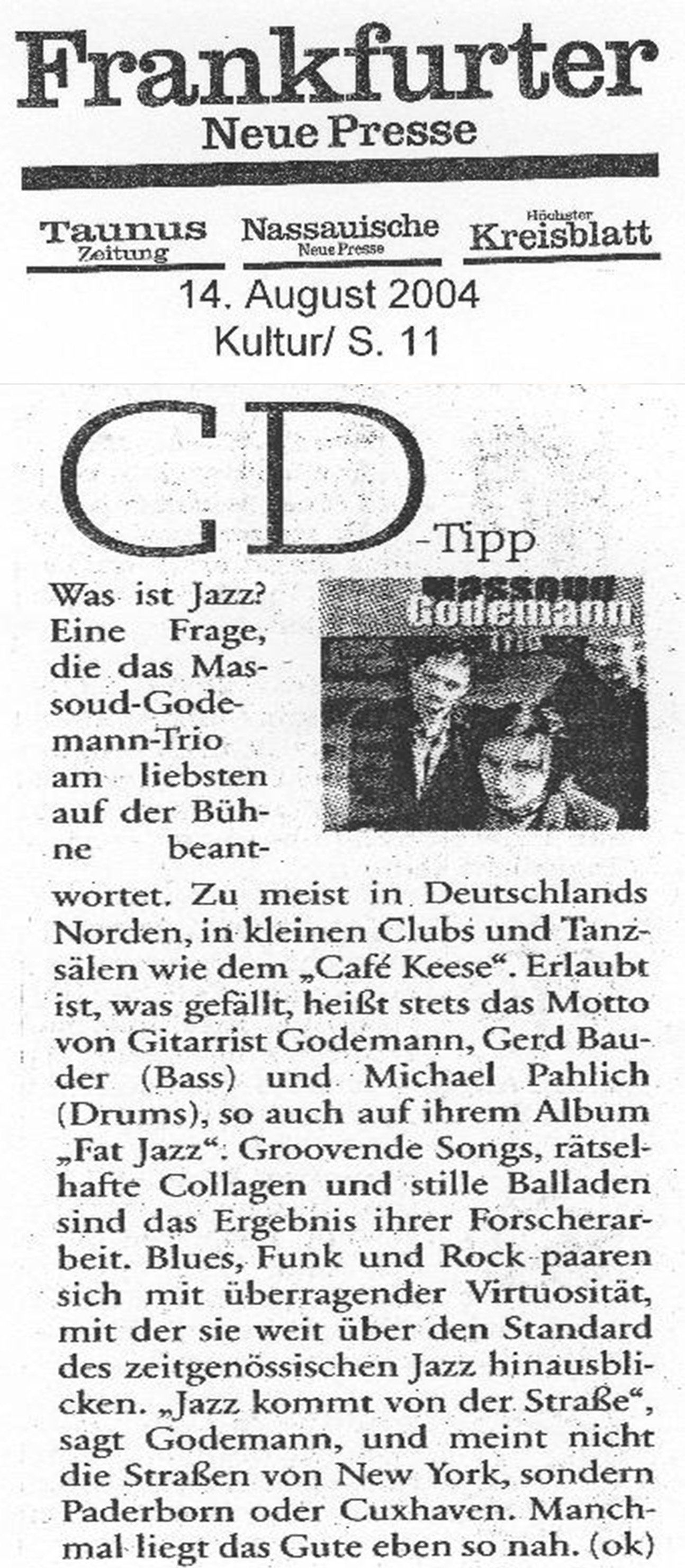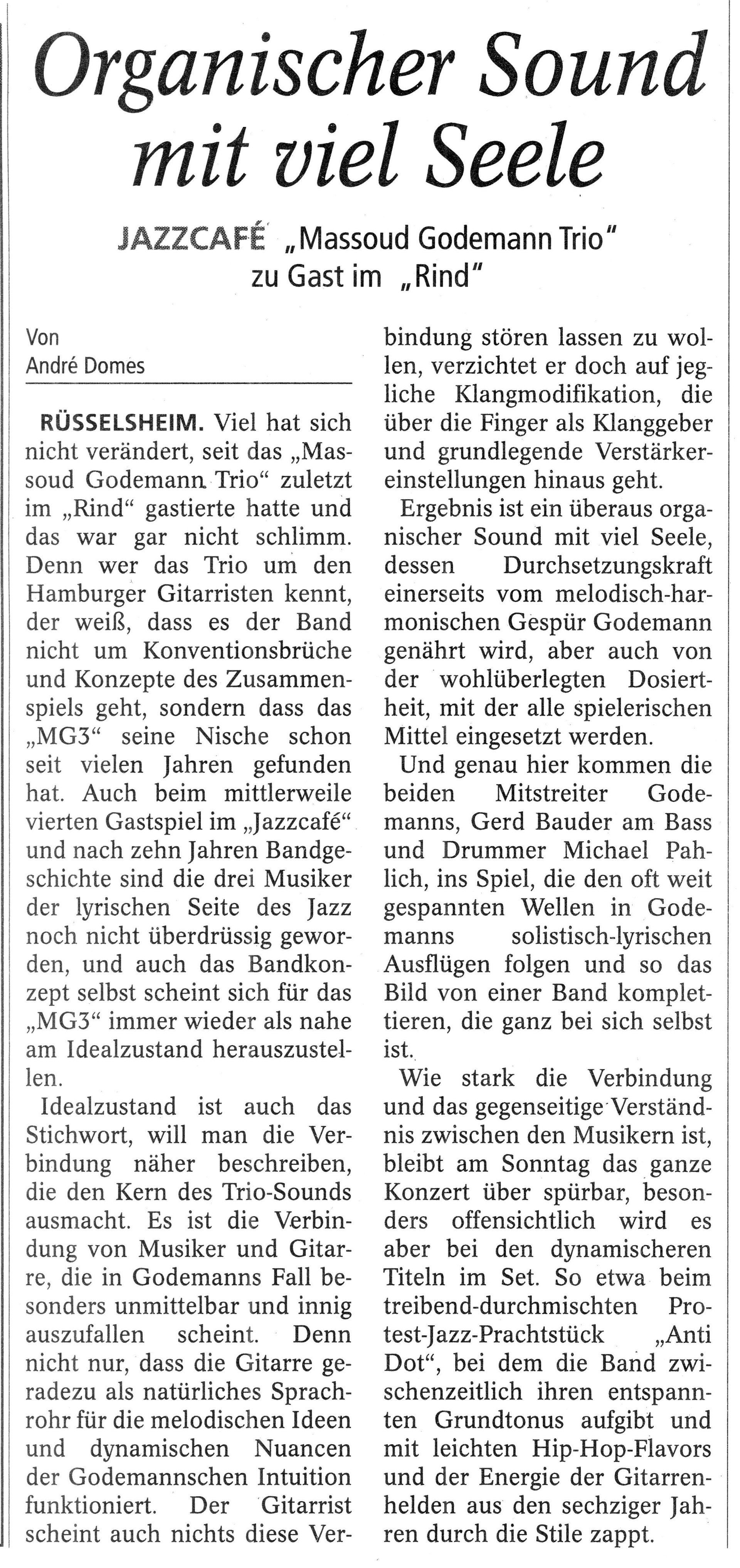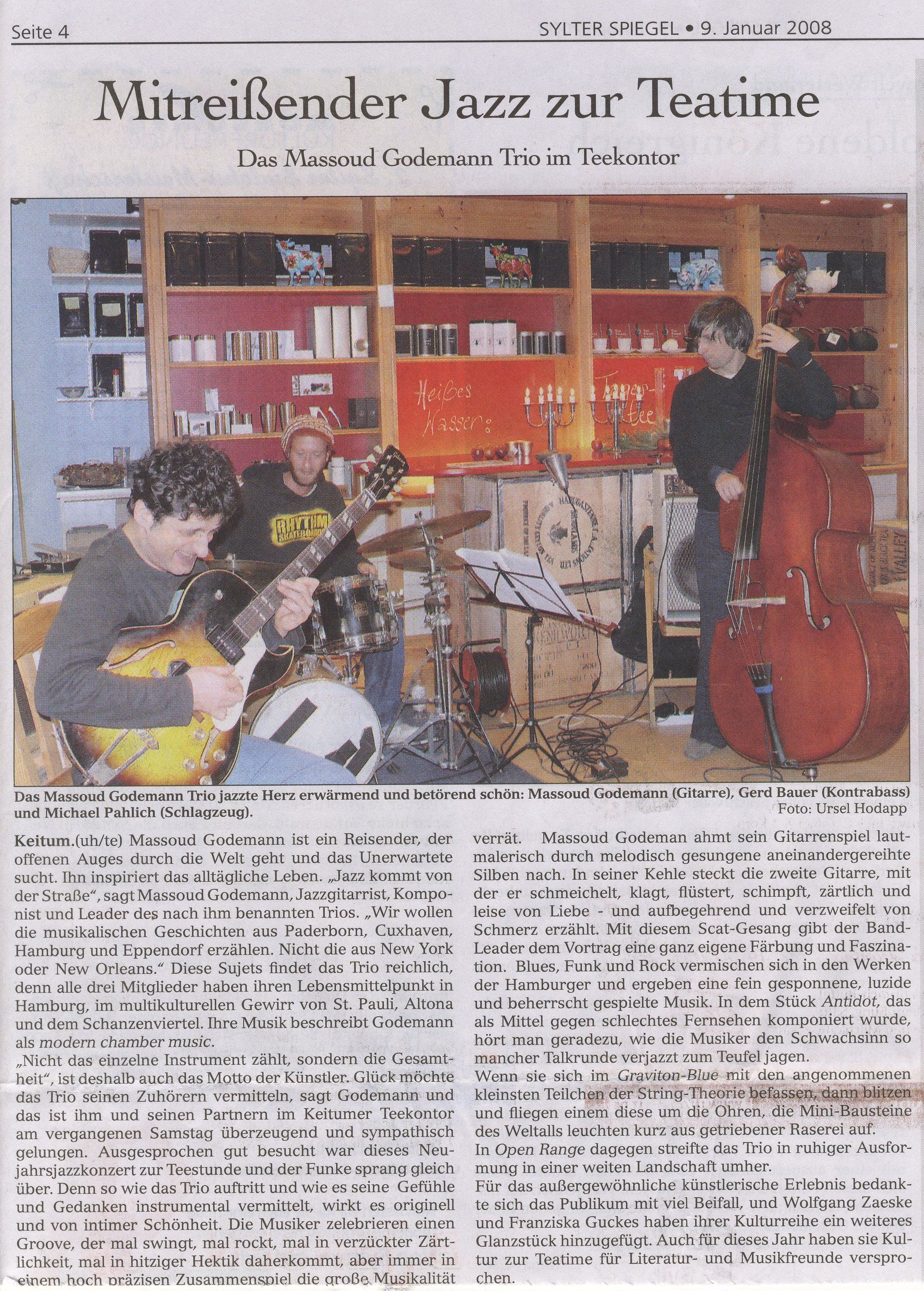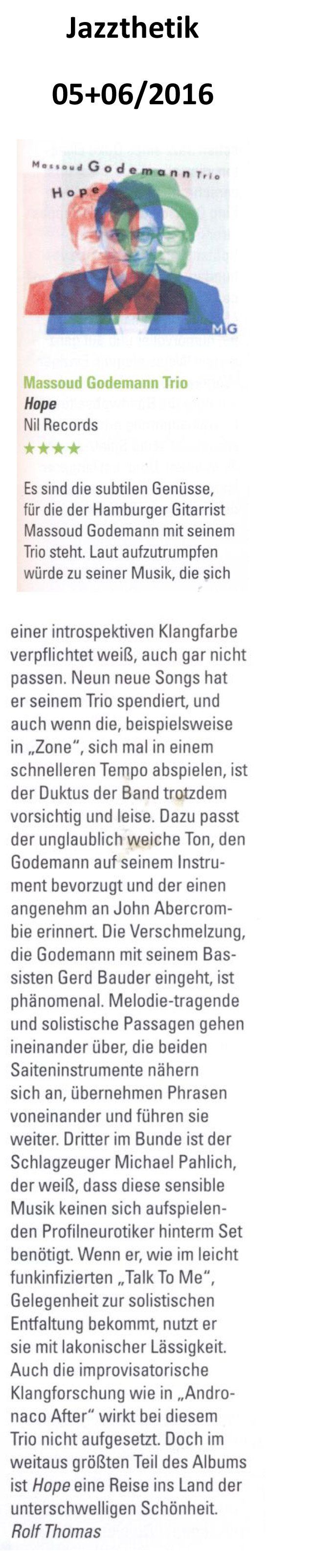 "Jazz is life and life is joy. My music is a tribute to life, "says Massoud Godemann, who recorded 2010 with Open Letter" one of the most beautiful, poetic, moving, convincing jazz guitar albums ever "(Jazzpodium Nov / Dec 2012).