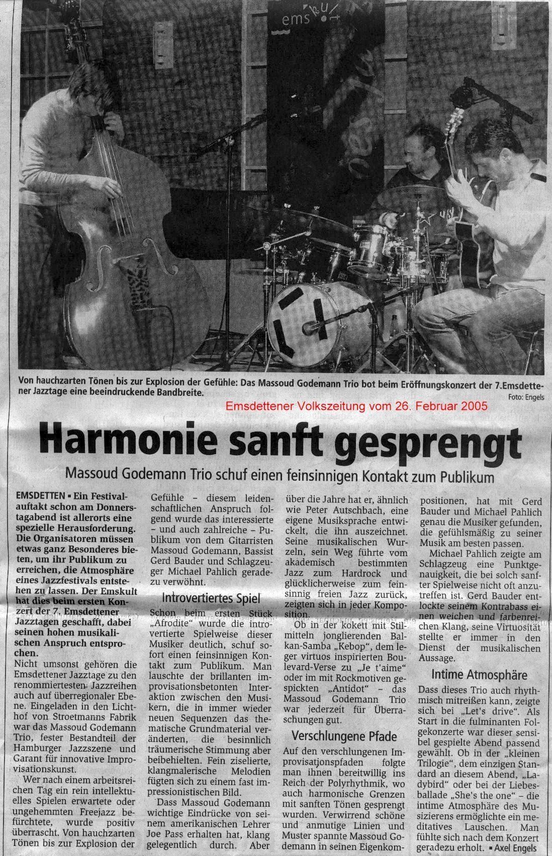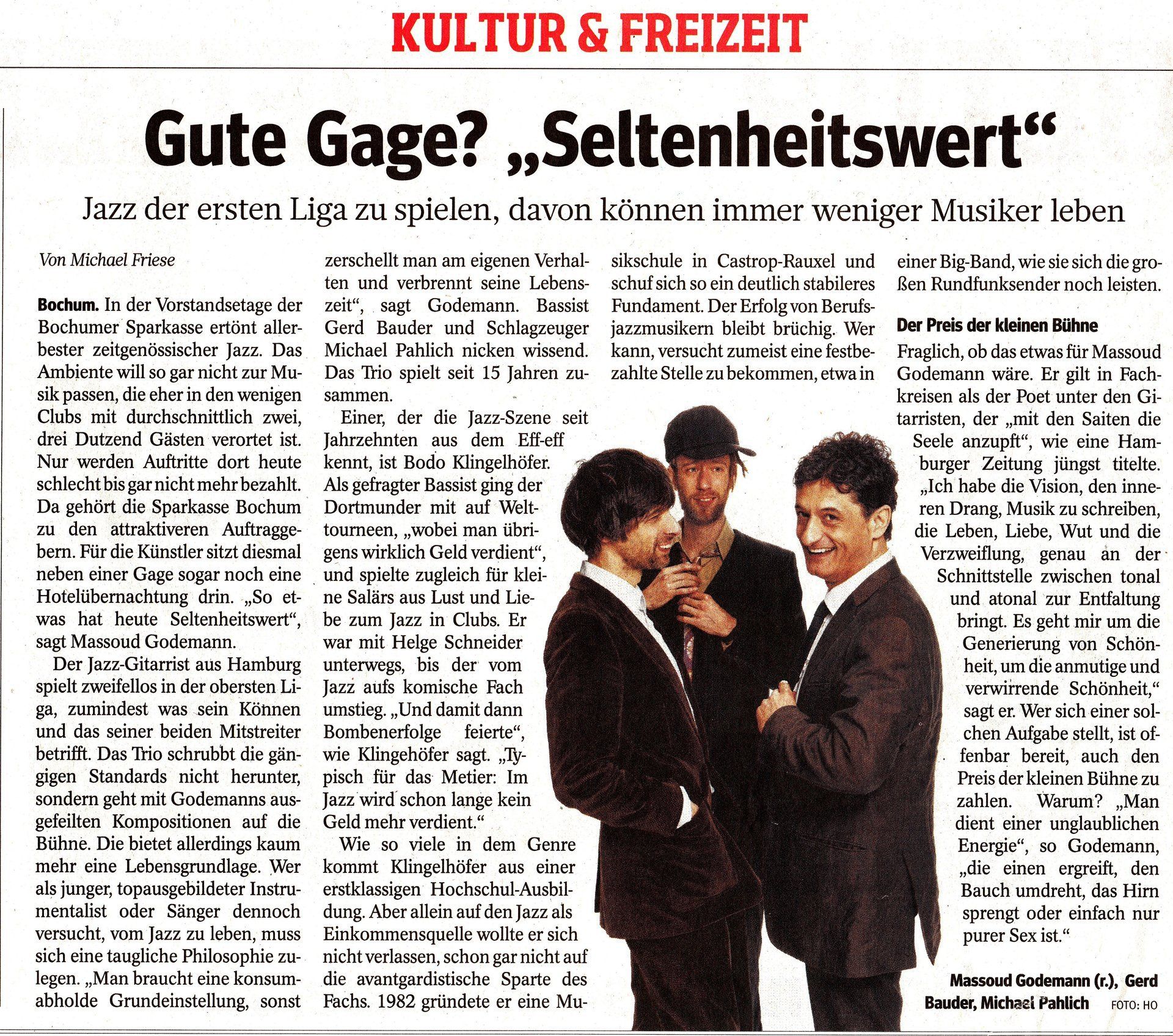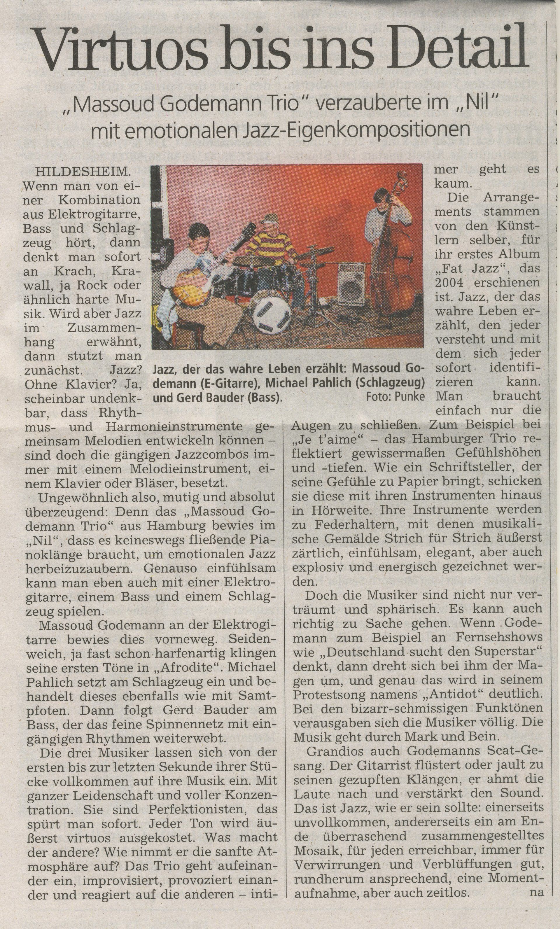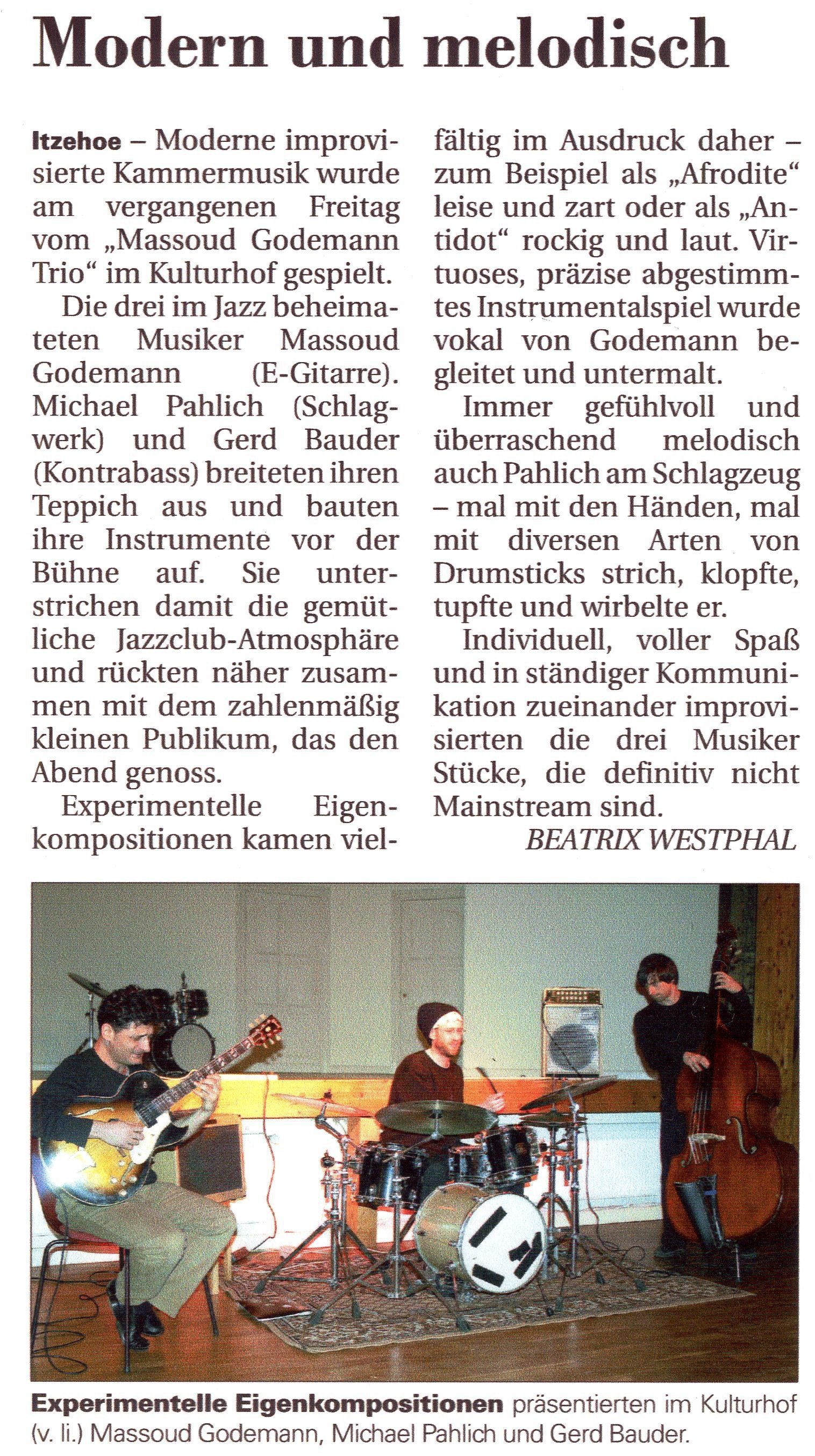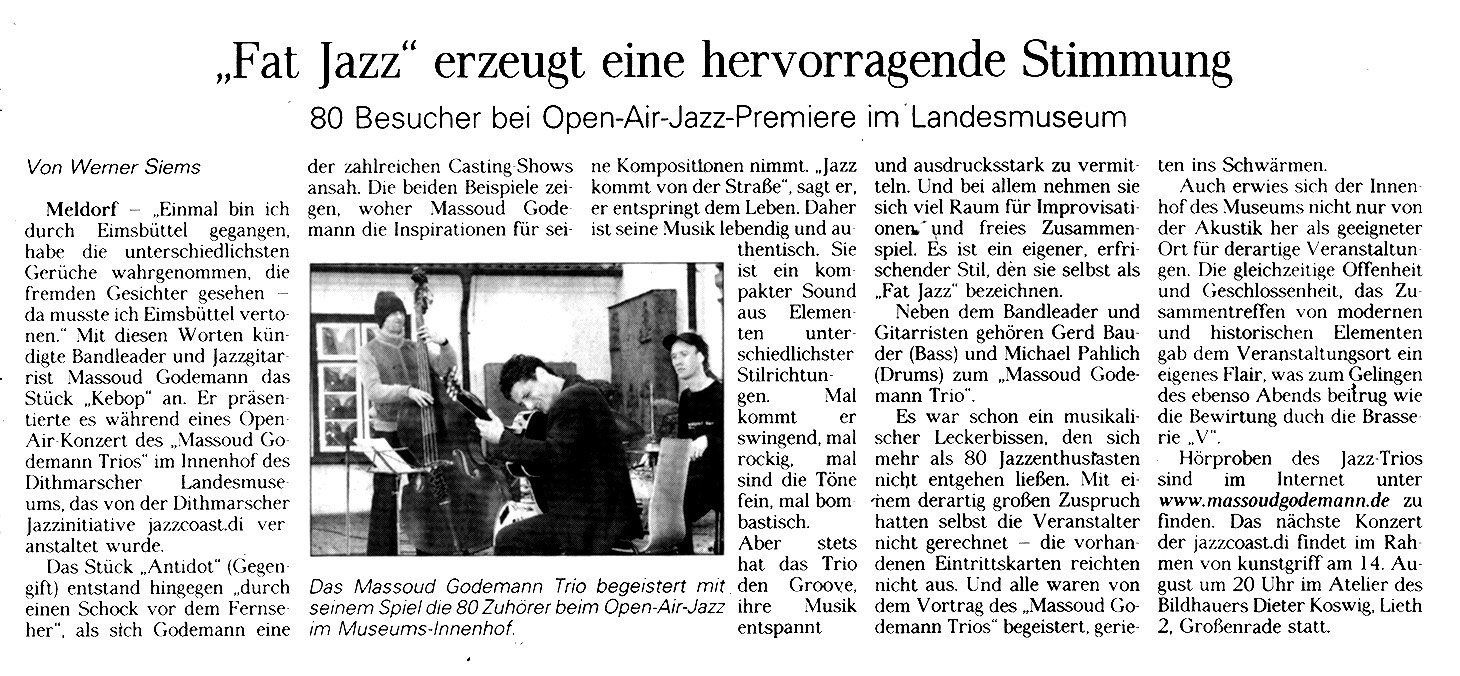 "Jazz is life and life is joy. My music is a tribute to life, "says Massoud Godemann, who recorded 2010 with Open Letter" one of the most beautiful, poetic, moving, convincing jazz guitar albums ever "(Jazzpodium Nov / Dec 2012).