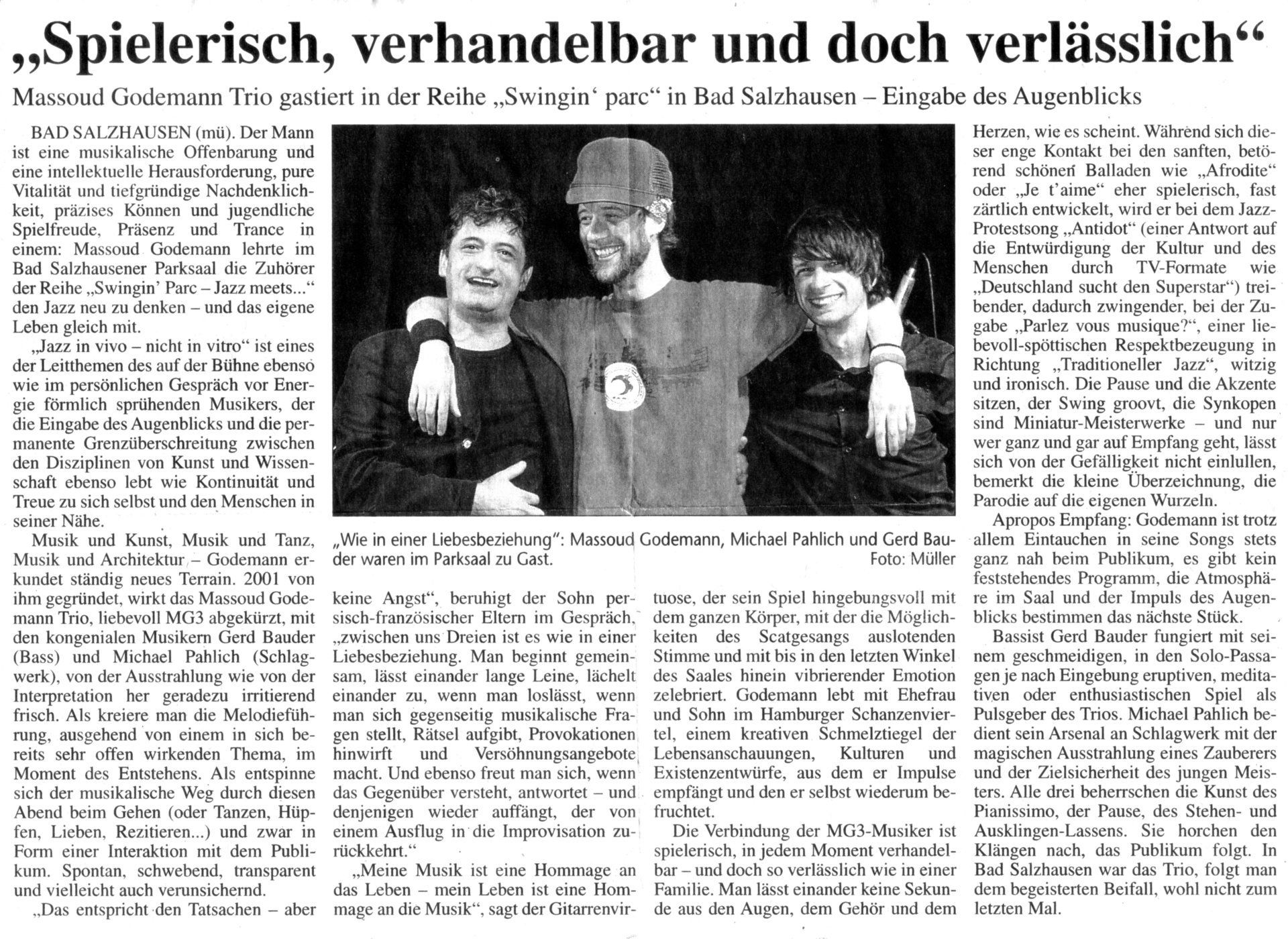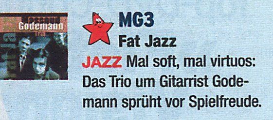 Together with Gerd Bauder (b) and Michael Pahlich (dr), he forms the trio MG3, which creates a world of sound and impressive versatility and is thus able to enchant the audience again and again.